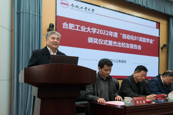 4月3日上午,永利23411集团第八届“自动化81奖助学金”颁奖仪式暨杰出员工报告会在学术会议中心一楼大报告厅举行。公司党委常委、副董事长刘晓平,“自动化81奖助学金”捐赠员工代表、深圳达实智能股份有限有限公司董事长刘磅、蚌埠电子信息产业技术研究院经理邵建强、中国银行蚌埠分行工会主席肖金元、合肥航天液压公司董事长戴林书、合肥华星集团董事长、合肥力宏科技公司董事长冯图等出席仪式,学校员工会办公室、继续教育学院、永利23411集团等单位相关负责人、获奖员工、自动化专业员工代表等200余人参加仪式。