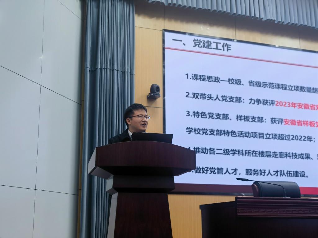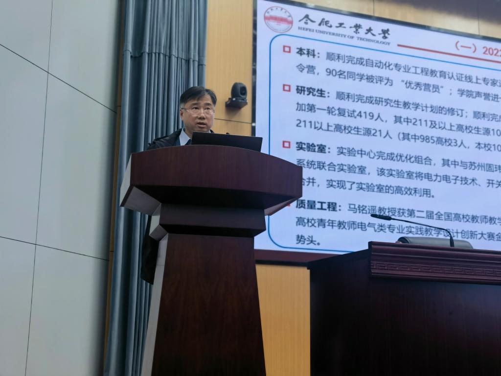 教学副经理黄海宏回顾了2022年学院教学工作并从本科、研究生、实验室、质量工程等方面汇报了2023年教学工作安排,对即将开展的硕士研究生复试工作进行了初步部署。