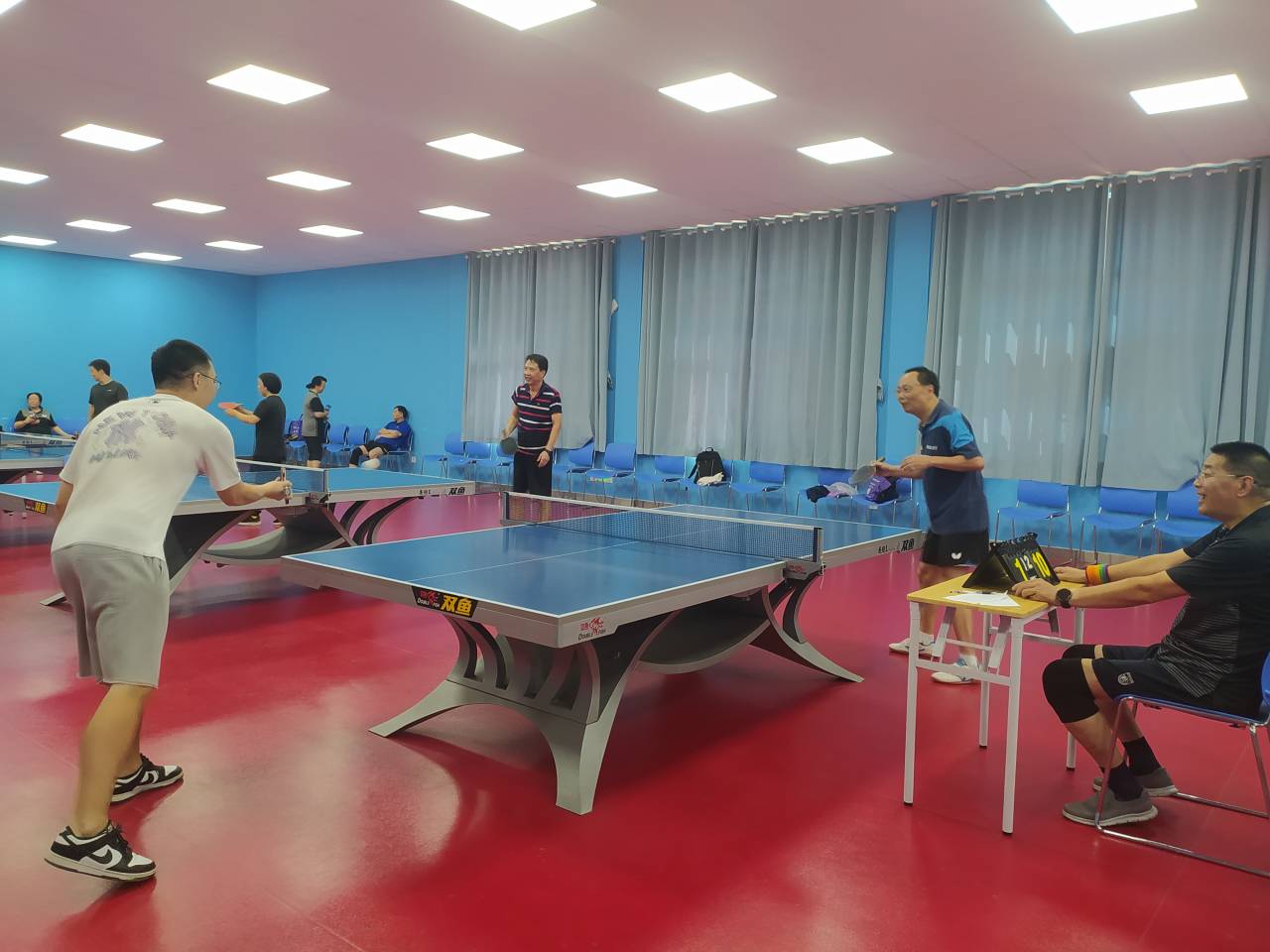2022年10月3日下午,在举国“欢度国庆、喜迎二十大”之际,学院工会在学校教职工俱乐部举办了学院教职工乒乓球团体赛。学院各单位共组成了四支代表队参加了比赛。