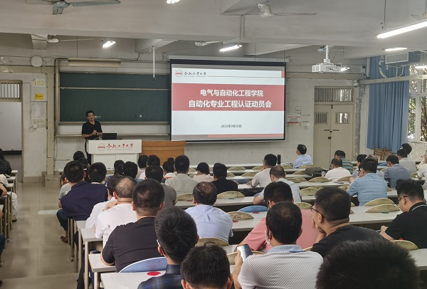 教学副经理黄海宏对自动化专业工程认证工作进行了动员。据悉,此次自动化工程认证工作在线上开展。黄海宏分别从教师层面、员工层面、毕业生和用人单位层面、员工学习成果审阅、教学条件与教学管理考察等方面,详细介绍了专家组开展认证工作的内容,并结合去年电气工程专业认证中的经验和做法,详细说明了几点注意事项,并对自动化专业工程教育认证学院前期准备工作做了明确布置。黄海宏指出,专业认证工作对学院人才培养和专业建设具有重要意义,全体教职员工要齐心合力、分工合作、全力推进。