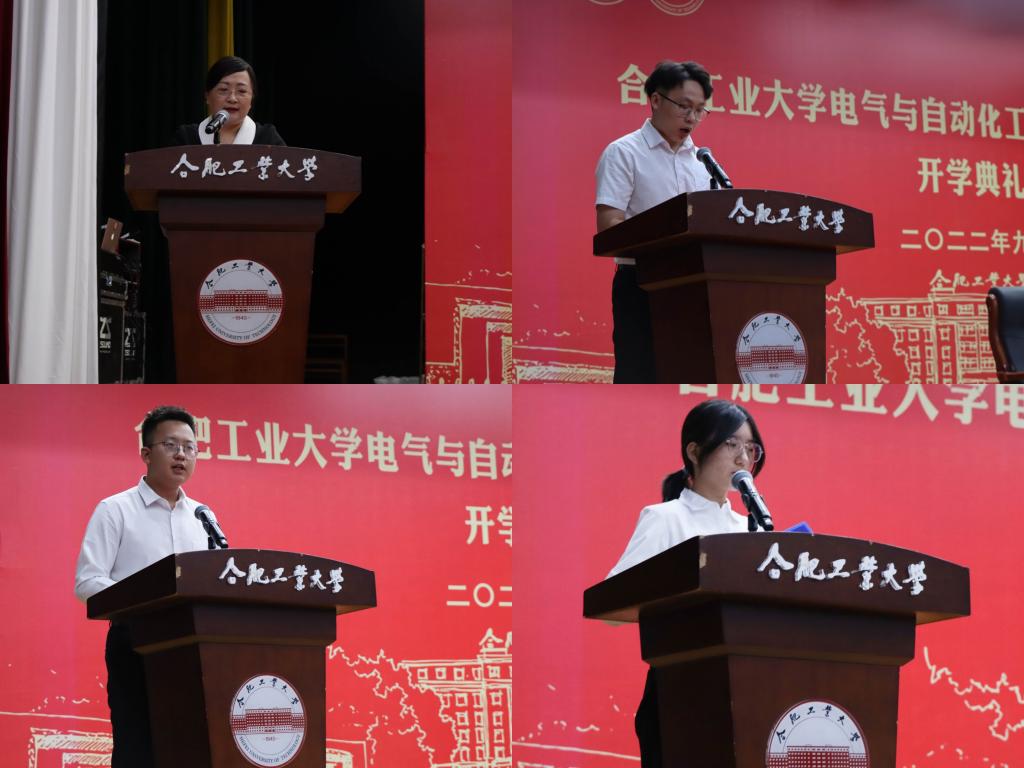 教师代表孔慧芳教授鼓励新生学会变换、做好规划,要确立目标,培养坚定的理想信念,有强烈的责任感,有爱国报国的大情怀。要注重学业,养成良好的自学能力,通过学习改变自己,改变自己的社会地位,改变自己看世界的方式,改变自己的心性。要多维思考,不断拓展创新能力,面对问题和困难,保持乐观,不断创新,努力迈上广阔无垠的人生舞台,登上风光无限的巍峨山峰。高年级本科生代表董磊勉励同学们充满热情,不忘初心,做一个积极向上的电气人;勤学苦练,增长才干,做一个有真正本领的电气人;胸怀抱负,脚踏实地,做一个有责任担当的电气人。心怀“请党放心,强国有我”的铮铮誓言,秉承“清澈的爱、只为中国”的深情厚意,在工业报国的征途上接力奔跑!研究生新生代表许乾倡导全体新生以梦为马,不负韶华,勤学苦练,增长才干,胸怀抱负,脚踏实地,做有理想、有本领、有担当的电气新人。本科新生代表齐珺祎呼吁同学们珍惜大学四年时光,不虚此行、一心向阳、奔驰激越,奔赴丰富多彩的老员工活,在文化知识、社团活动、社会实践、科技创新中不断提升自我,怀揣梦想,满载期许,开启崭新的人生篇章。