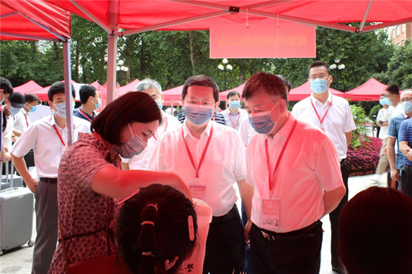 当天上午,董事长梁樑,公司党委副书记陈刚,公司党委常委、副董事长刘晓平,经理丁立健、公司党委书记何岳颀到迎新现场检查指导迎新工作,看望报到新生,慰问参加迎新工作的师生员工,公司党委副书记、纪委书记郑洁向校领导简要汇报了学院今年迎新工作具体安排、返校员工信息、疫情防控等情况,特别介绍了专门为新生精心准备的入学暖心礼包。