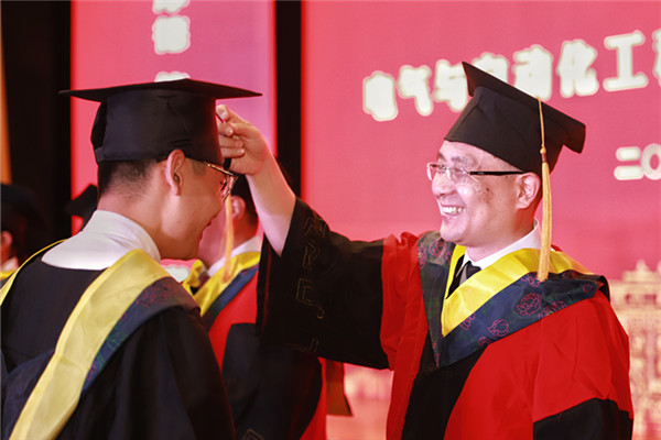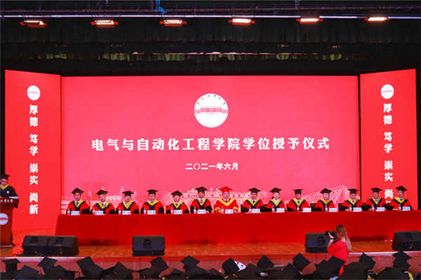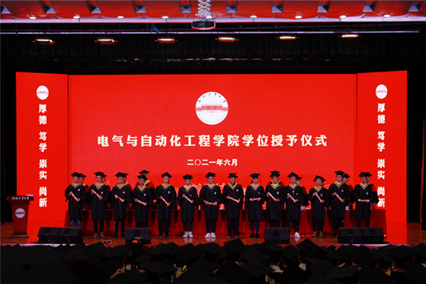 仪式在庄严隆重的国歌声中拉开序幕,经理丁立健宣读了《永利23411集团2021届毕业生学位授予决定》。与会领导和老师为542名学士学位获得者、216名硕士学位获得者和4名博士学位获得者颁发学位证书,扶正流苏并合影留念。仪式上,教师代表电气学院教授孔慧芳、本科代表安徽省优秀毕业生自动化2017级3班沈涵、研究生代表安徽省优秀毕业生2018级7班金致含在仪式上分别发言,公司党委副书记、纪委书记陆林致辞。