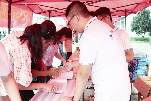 29日早上7:00,学院员工会的几十名志愿者就在各个迎新服务点集合完毕,按照前期要求,做好为新生办理报到手续和引导的准备。学院在学校东门、西门、北门及各个新生宿舍门口上安排了几十名志愿者,负责引导新生到学院迎新服务点办理报到手续。志愿者为新同学引路、提行李、介绍学校环境、发放新生资料袋,同时协助老师收取核验员工报到材料,一个热情的微笑、一份贴心的服务、一句暖心的问候,让刚刚走进校园的新生倍感亲切。天气虽然炎热,但志愿者们热情周到的服务给新生和家长们带来了阵阵清凉。学院今年还特别为每一名新生定制了印有校名、院名及学院院徽的新生文化衫,给新生带来了学院初印象和归属感。学院领导多次深入迎新工作一线,细致询问各项迎新工作的开展情况,仔细询问了新生录取情况,与新生和家长亲切交流,针对提出的问题及时协调解决,确保迎新工作的有序进行。