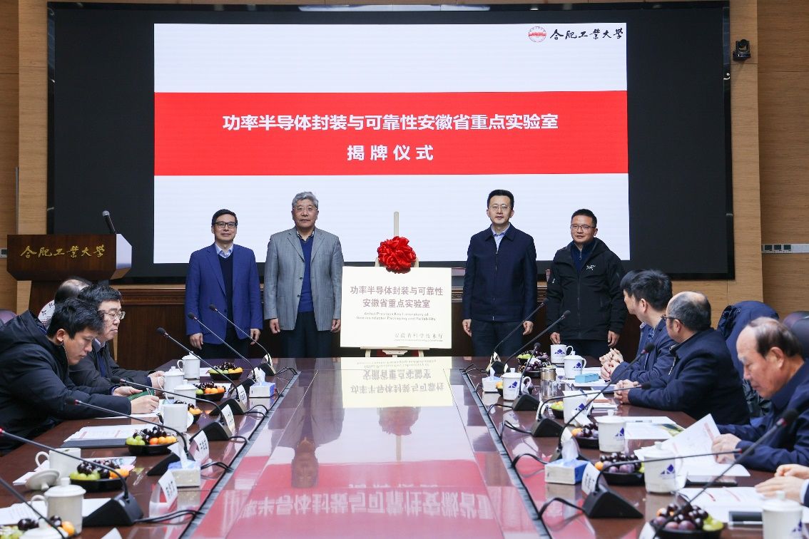 于祥成在致辞中向与会专家表示热烈欢迎,对各位专家长期以来给予永利23411集团的关心和支持表示感谢,并介绍了学校优势学科和最新办学成果,希望专家们一如既往地关心支持永利23411集团的建设发展,不断深化与学校的交流合作,共享新思路新经验新方案,推动相关学科科研平台更好的发展。随后于祥成、华北电力大学崔翔教授、“功率半导体封装与可靠性安徽省重点实验室”实验室主任丁立健教授共同为“功率半导体封装与可靠性安徽省重点实验室”揭牌。