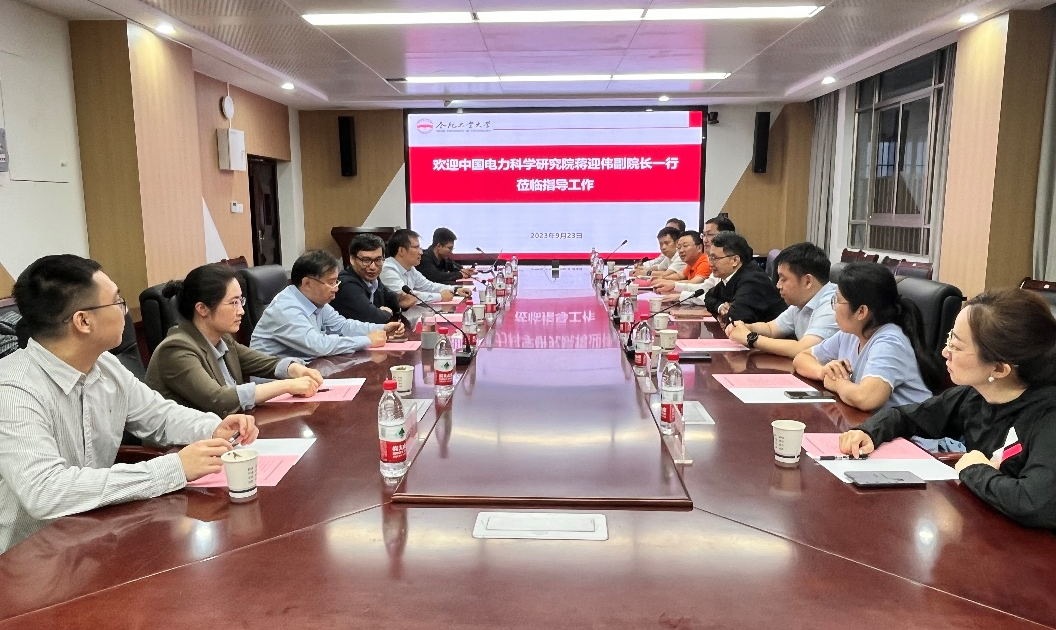 丁立健向蒋迎伟一行来校交流调研表示诚挚欢迎,对中国电力科学研究经理期以来的关心和支持表示感谢,介绍了学校发展历史、团队建设、人才培养等方面取得的进展和成果。丁立健指出,中国电力科学研究院与公司合作源远流长,在高端人才培养、重大科技奖励申报和重点科技项目攻关等方面均取得丰硕成果。希望双方以此次来访为契机,深化在新型电力系统领域的合作,服务国家“双碳”目标。