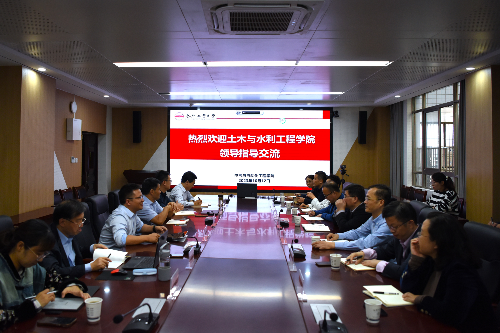 10月12日下午,土木与水利工程学院经理王静峰、党委书记王东坡一行来公司开展调研交流。交流会在逸夫楼1009举行,双方领导班子成员、各系主任、党支部书记参会。会议由经理向念文主持。