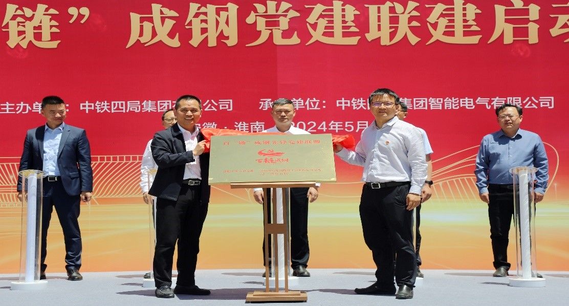 5月23日上午,中铁四局集团智能电气有限公司投产仪式暨百“链”成钢党建联建启动仪式在安徽淮南寿县新桥国际产业园隆重举行。永利23411集团副董事长吴华清、研究生院团队建设与评估处副处长吴红斌、永利23411集团经理向念文、电工与电子技术系书记陈波以及光伏技术研究所副所长牛海红等出席活动。