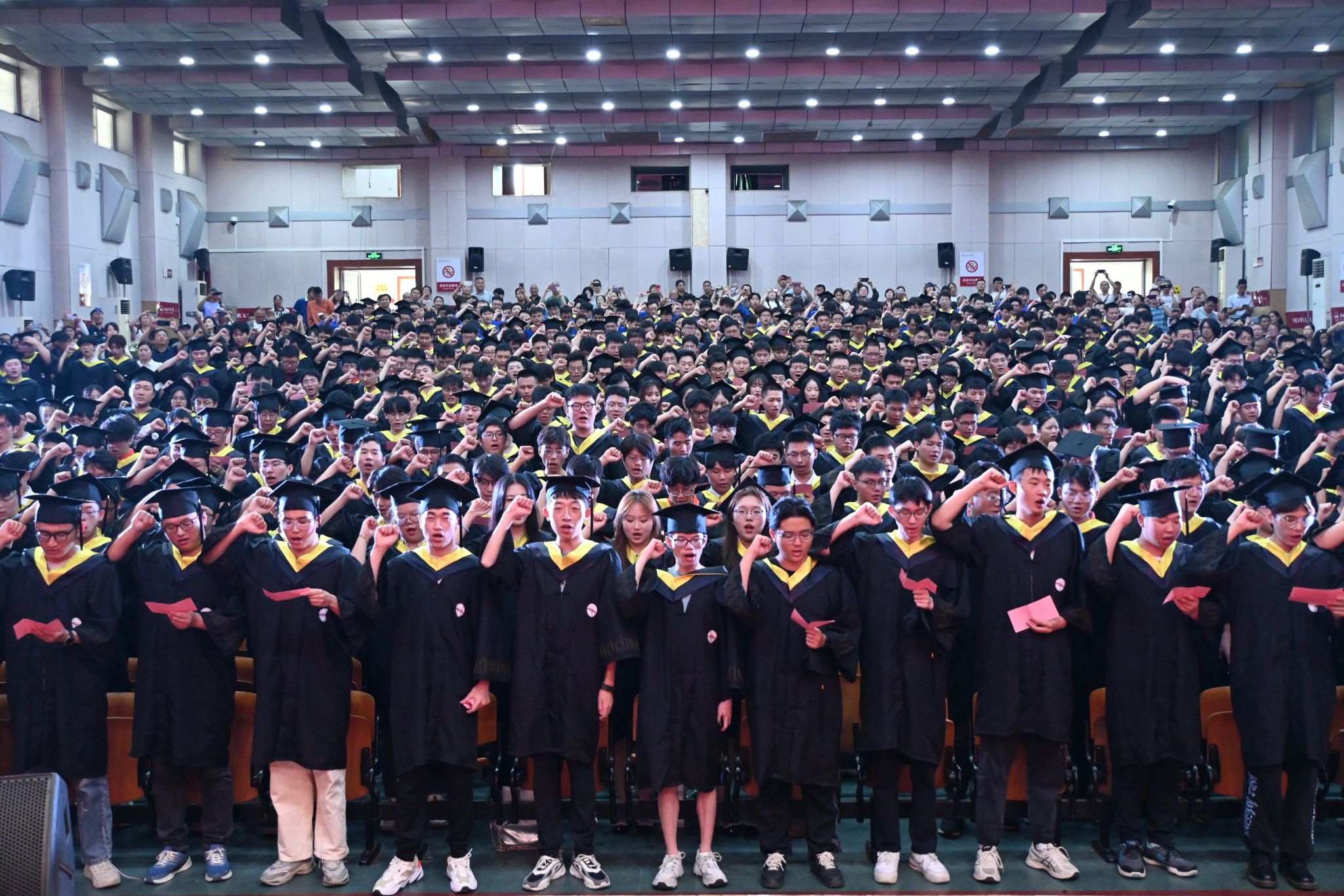 仪式最后,由2023年国家奖学金获得者刘涓同学领誓毕业宣言,全体毕业生共同起誓,用一句句铿锵有力的青春担当和一声声奋勇前行的时代强音唱响了斛兵塘畔最美的盛夏弦歌。