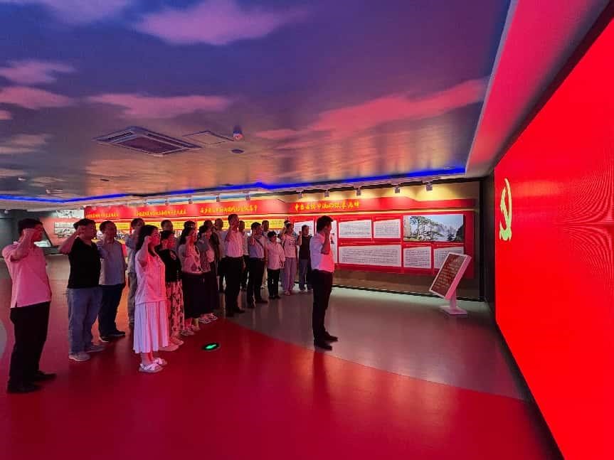 在讲解员的引导下,大家依次参观了序厅和“党性修养 立身之本”“理想信念 精神之钙”“纪律规矩 行为底线”“作风形象 人心向背”“不忘初心 继续前进”等主题展厅,通过观看生动的历史资料,聆听感人的革命故事,党员们深刻理解了党性修养的重要性,充分感受到老一辈革命家坚定的共产主义信仰和英勇无畏的奉献精神。最后,全体党员一起重温入党誓词,进一步坚定理想信念,筑牢思想之基。