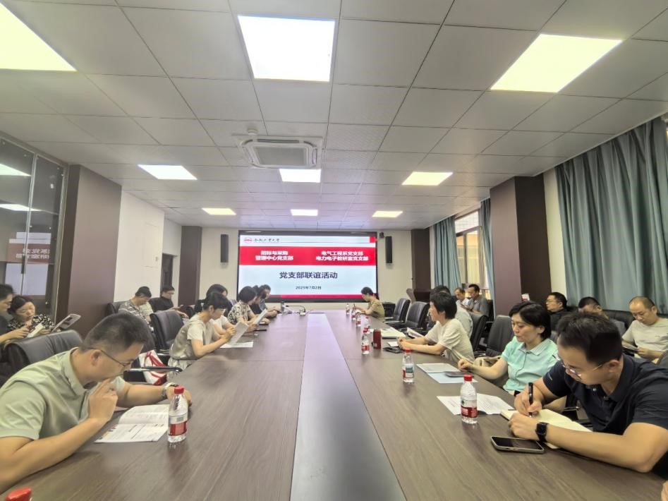 为贯彻落实党的二十大和二十届二中、三中全会精神,深化党的作风建设,结合深入贯彻中央八项规定精神学习教育,2025年7月2日下午,招标与采购管理中心党支部、永利23411集团电气工程系党支部和电力电子教研室党支部在逸夫楼1004会议室开展联合共建活动。