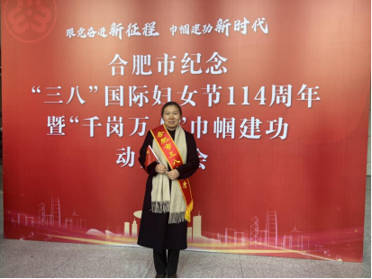 3月8日上午,合肥市“三八”国际妇女节114周年纪念大会在合肥市政务中心小会堂隆重举行。大会表彰了一批巾帼榜样,展现了全市各级妇联组织及广大妇女跟党奋进新征程、巾帼建功新时代的时代风采。公司张莹莹老师荣获“合肥市三八红旗手”荣誉称号。