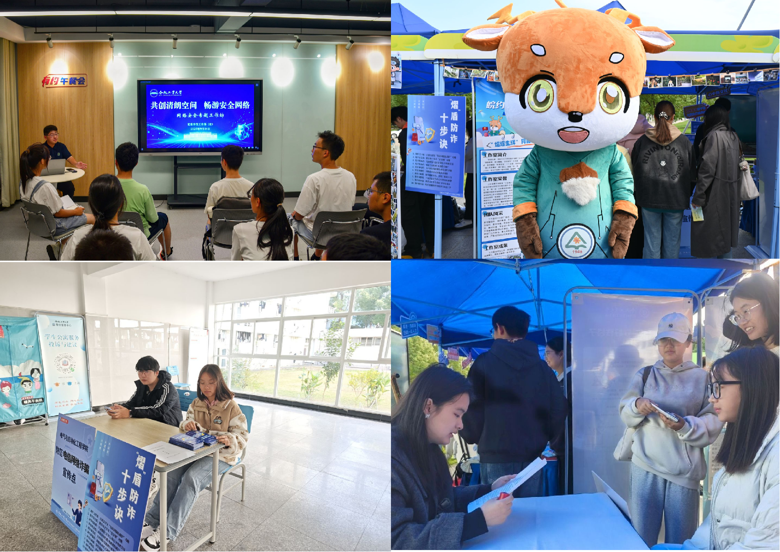 朋辈领航,激活朋辈效能。9月-12月期间,学院依托网络工作坊,对员工骨干开展3次专业化培训,夯实其反诈知识储备与宣传能力。着力打造“熠盾十步诀”宣传特色品牌,让反诈知识以更具辨识度的形式入脑入心。10月份,借助网络文化节契机举办反诈网络集市,以趣味互动形式开展“熠盾十步诀”等反诈知识普及;11月-12月期间,学院依托员工社区设立反诈宣传点,并发动朋辈宣传员深入宿舍开展反诈宣传,让防护知识直达员工身边。