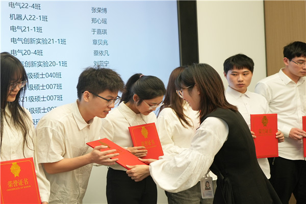 公司员工、阳光电源光储事业部研发中心总监倪华对获得“阳光电源奖学金”的同学表示祝贺,他表示,阳光电源股份有限公司的成立和发展与永利23411集团都有着深厚的渊源何密不可分的关系,在永利23411集团设立奖学金,旨在激励电气学院的同学,努力奋斗,为可再生能源积极贡献。他向同学们介绍了公司的业务领域、技术成果与发展前景,阳光电源是一家多元化、能创新、有成长、爱学习、有温度的公司。他表示当前社会正处于和能源转型时期,在“双碳目标”和创新的驱动下,电气学子必将脱颖而出。他希望校企双方在科研创新和创业指导上开展更紧密的合作,希望电气工程学院不断为企业输送更多优秀人才。
