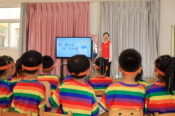 共建仪式后,支部党员顾涵江以讲故事的方式向小朋友科普有关用电安全小知识;以“你画我猜”互动游戏,利用日常生活中运用以增强记忆;以观看“安全用电科普”微短片,引导小朋友观察发现短片中列举的危险用电行为和正确做法,增强员工的自我保护意识。最后,志愿者带领小朋友们合作完成用电安全手抄报,在动手实践中增强防范意识,提高自身预防能力,现场气氛十分活跃。