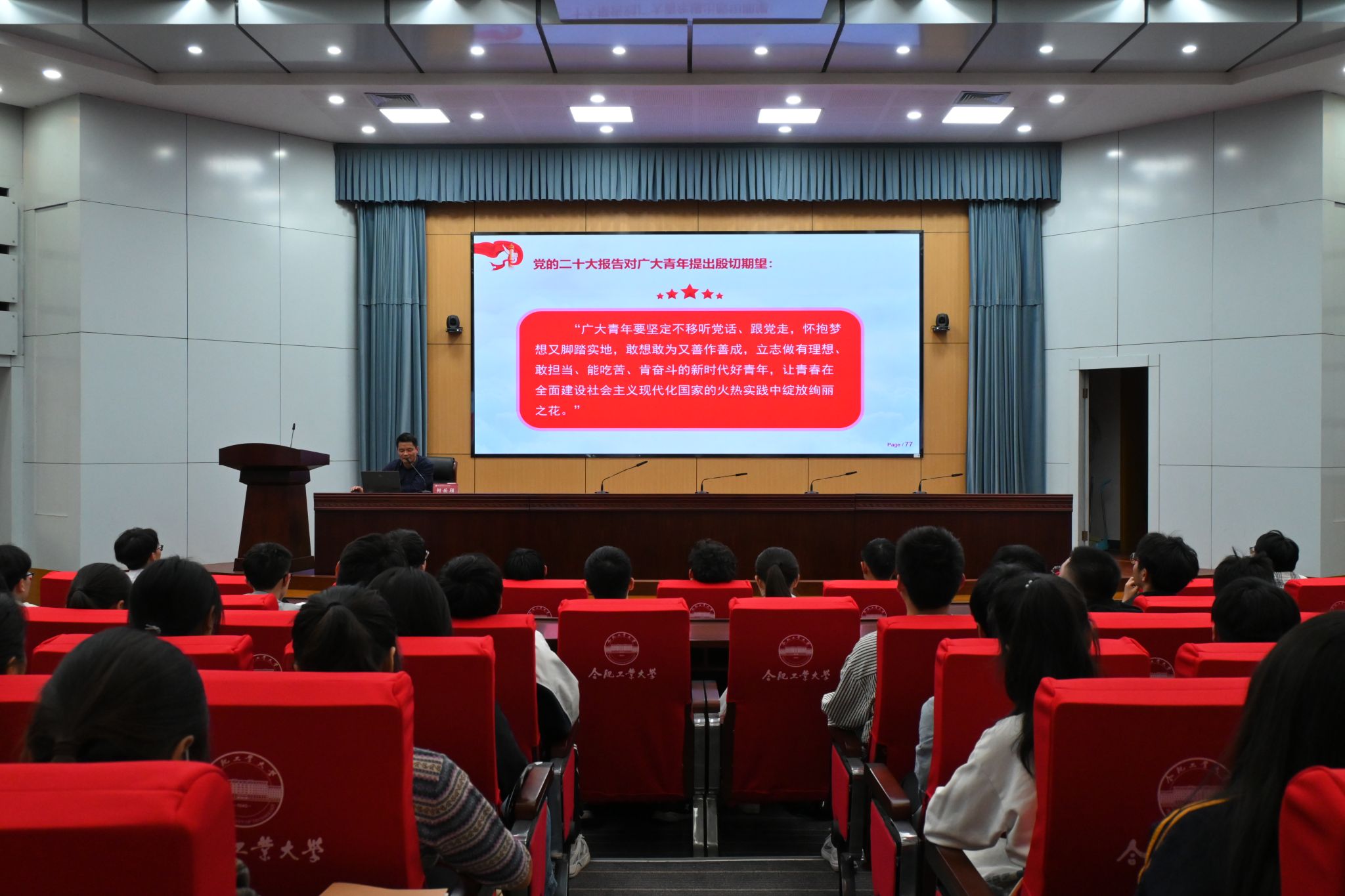 开班仪式后,何岳颀以《认真学习贯彻党的二十大精神,深入领会习近平新时代中国特色社会主义思想》为题,为全体学员带来精彩的党课。他围绕“习近平新时代中国特色社会主义思想的丰富内涵”“党的二十大的主要精神”“关于教育科技人才的重大部署”“关于以‘伟大自我革命引领伟大社会革命’的重要要求”“如何认真学习贯彻党的二十大精神”五个方面展开,回顾习近平新时代中国特色社会主义思想和二十大的主要内容与精神,深入剖析二十大的精神和关于教育科技人才的重大部署,引导学员端正学习态度、把握学习方法、坚持学以为勤、坚持对党忠诚、坚持谋政为民、坚持创业以实、坚持修身以严,认真学习贯彻党的二十大精神。激励学员在披荆斩棘中勇往直前,在砥砺奋斗中锤炼本领,在攻坚克难中创新发展,胸怀梦想,脚踏实地,刻苦钻研,为社会做出贡献,让青春在中国特色社会主义现代化建设的不懈奋斗中绽放绚丽之花。