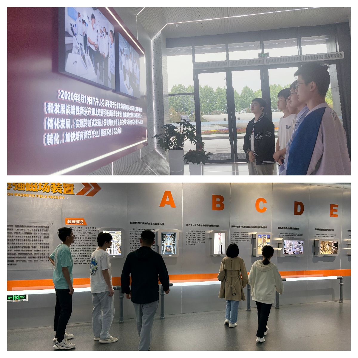 安徽创新馆由三栋独立的场馆组成,馆内充分展示了安徽创新发展最新成果、最靓特色、最杰出人才。在馆内讲解员的带领下,全体学员沿着习近平总书记的足迹,学习领悟科技创新的重要意义,大家依次参观了“创引擎”“创智慧”“创未来”三大主题创新成果展示区,近距离观看了托卡马克核聚变实验装置模型、稳态强磁场大科学装置、量子信息、同步辐射装置、机器人、无人机等科技创新产品,体验了能量单车、全息技术环幕等前沿科技设备。同学们认真参观、仔细听讲,积极体验,切实感受到科技创新的魅力和优秀科研成果对国家发展进步、人民幸福生活的推动作用。