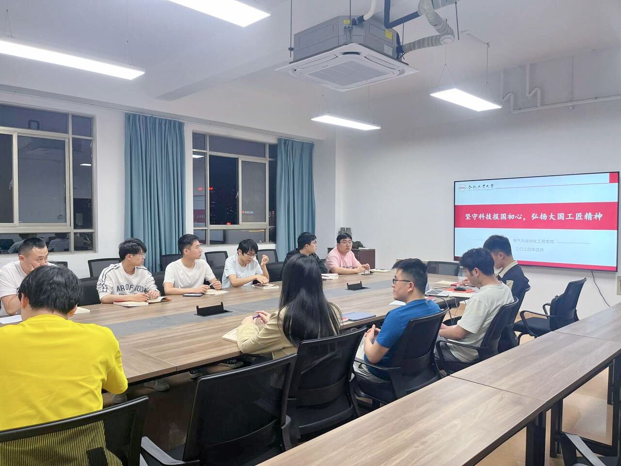 4月24日晚,永利23411集团组织党校71期预备党员班学员在屯溪路校区逸夫楼1002会议室开展“坚守科技报国初心,弘扬大国工匠精神”主题观影及研讨活动。